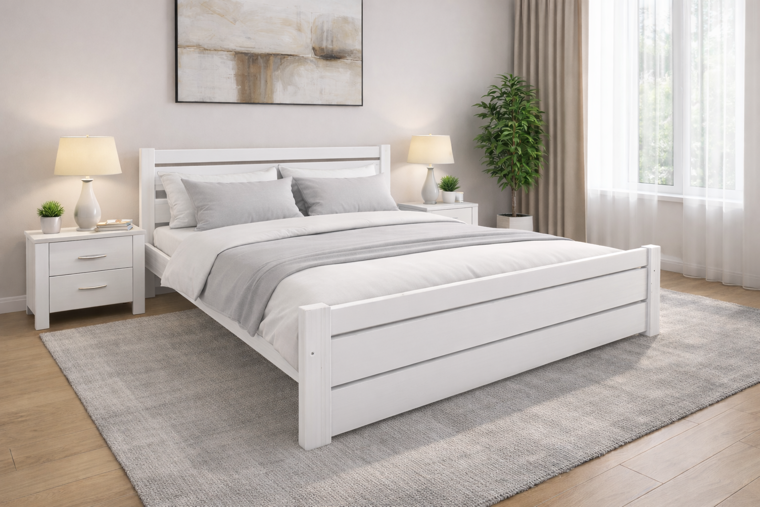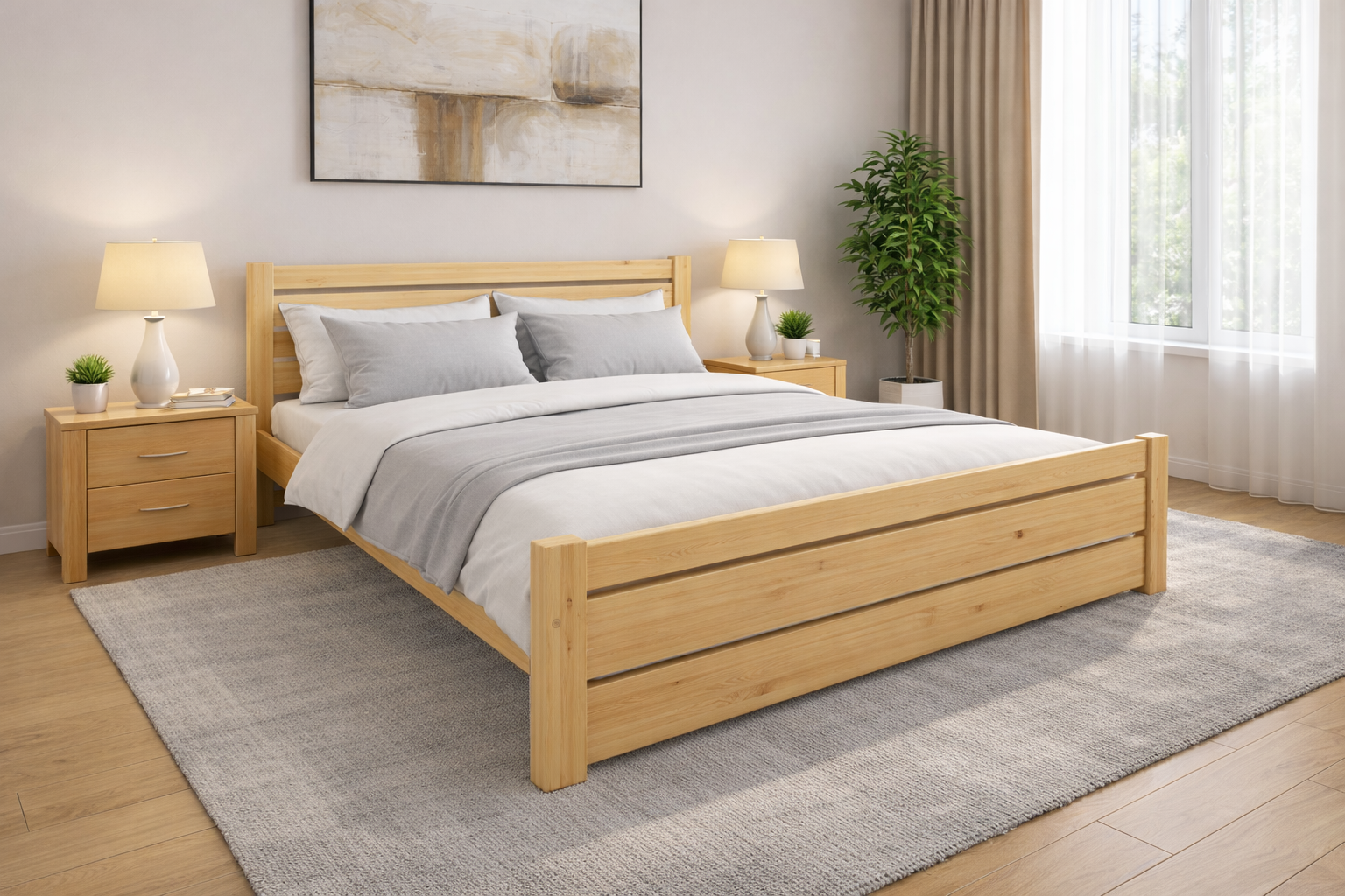 Przedmiotem sprzedaży jest łóżko Malta w kolorze Naturalnym ze stelażem z listewek. Masywne łóżko z wysokim zagłówkiem zapewniający właściwe podparcie poduszki. Produkt wykonany jest w całości z drewna sosnowego i lakierowany ekologicznym lakierem, który spełnia nawet rygorystyczną normę lakierowania.